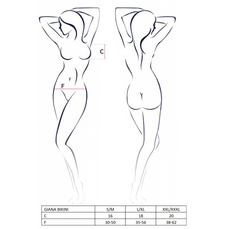 Предлагаем купить эротический комплект Passion Erotic Line GIANA BIKINI - белье, в котором вы будете выглядеть невероятно соблазнительно и женственно. Полупрозрачный лиф на тонких бретельках выгодно подчеркнет красоту груди. Лиф и стринги декорированы симпатичной оборкой с красной нитью. Пикантные разрезы на чашках лифа и на трусиках украшены кокетливыми бантиками. Порадуйте себя красивым и элегантным эротическим комплектом.