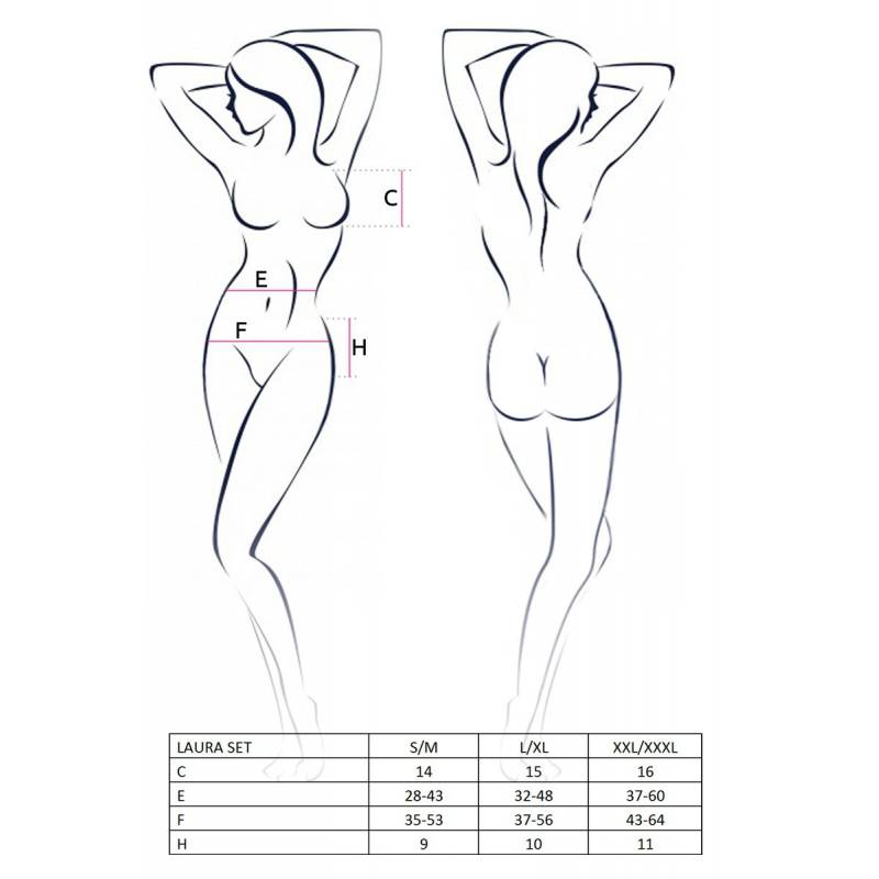 Декоративный и крайне возбуждающий эротический комплект Passion Erotic Line LAURA SET черный состоит почти полностью из тонких бретелей, бантов и кружевной каймы, однако именно это и делает его привлекательным и манящим.