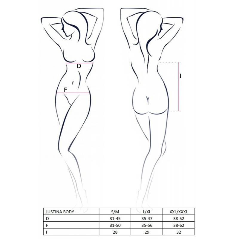 У нас вы можете купить эротическое боди Passion Erotic Line JUSTINA BODY - невероятно сексуальное белье с фантазийным дизайном. Изюминка данной модели - полностью открытая грудь в обрамлении тонких бретелек. Красоту и пышность груди подчеркивает нежное черное кружево с полупрозрачной оборкой. Ромбовидная вставка внизу живота декорирована миниатюрным бантиком. Она плавно переходит в стринги, тем самым акцентируя внимание на бедрах и попке. Почувствуйте себя соблазнительной и желанной в этом эротическом боди.