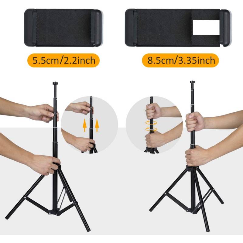 2. Регулируемая высота от 40 до 160 см. Ножки штатива раскрываются до ширины 75 см. Устойчивый штатив можно отрегулировать на любую высоту в пределах необходимого размера, достаточно короткую, чтобы стоять на столе, достаточно высокую, чтобы соответствовать вашему росту.