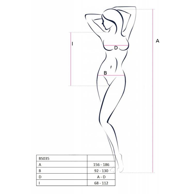 Откровенный короткий комбинезон-боди Passion BS035 – отличный способ соблазнить мужчину, встрепенуть его либидо, самые откровенные фантазии и желания. Полупрозрачная ткань лифа великолепно подчеркивает грудь. Фантазийный декор плеч подчеркивает хрупкость и откровенность тела женщины, а также придает образу невинности. Фигурные вставки на животе бодистокинга приковывают мужское внимание к бедрам, животику и талии, возбуждают и рисуют сладостные картины жарких утех.