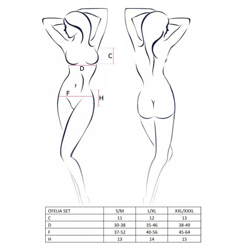 Невероятный комплект белья Passion Erotic Line OFELIA SET WITH OPEN BRA станет как отличным самостоятельным костюмом, так и основой для ролевого образа. С помощью такого сета можно с легкостью воплотить роль официантки, горничной или медсестры.