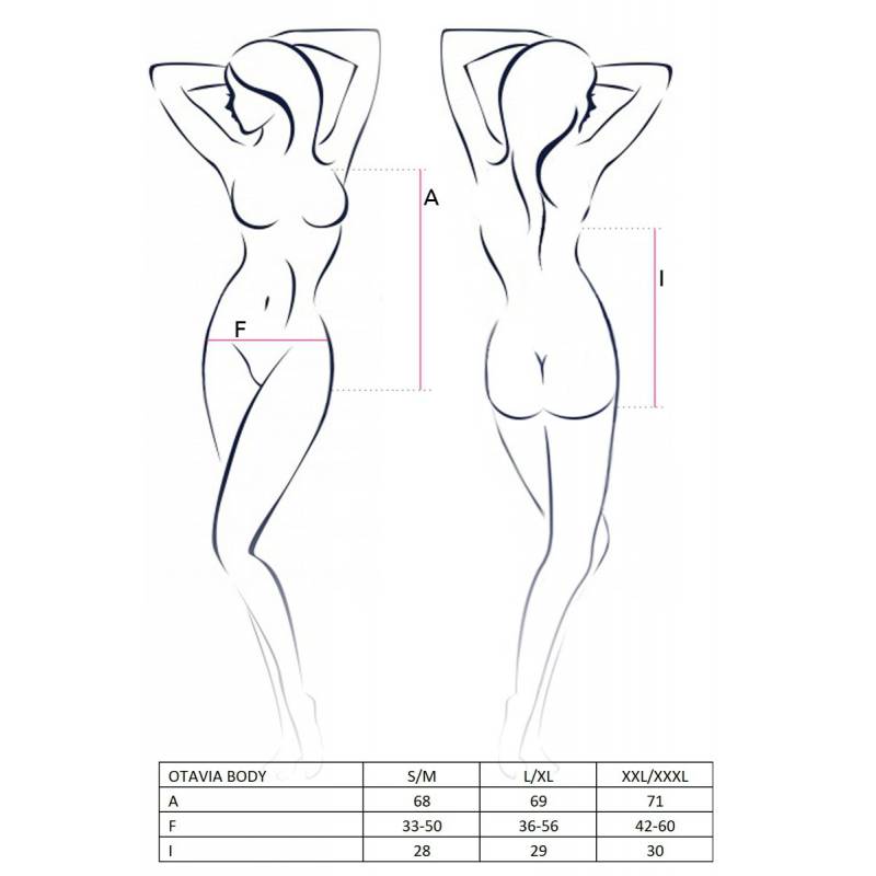 В нашем магазине вы можете купить кружевное боди Passion Erotic Line OTAVIA BODY. Данная модель выполнена из тонкого черного кружева, которое очень приятно на ощупь. Глубокий V-образный вырез и открытая спина делают силуэт более стройным и утонченным. Нижняя часть боди декорирована полупрозрачной оборкой. Кружевное боди акцентирует внимание на бедрах и ягодицах, подчеркивая их красоту. Побалуйте себя невероятно сексуальным и женственным бельем.