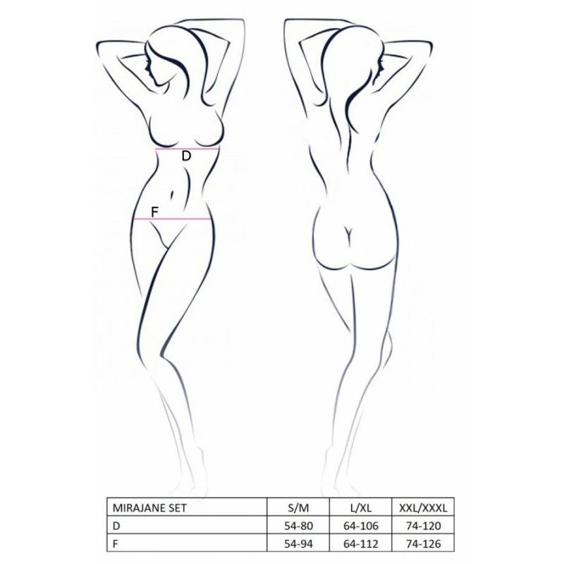 Набор Mirajane - это инновационная комбинация тонкой сетки с эластичной резиной с логотипом Passion. Оригинальный крой подчеркивает бюст, а ремешок открытого типа - пряное дополнение к набору. Mirajane был создан в первую очередь для женщин, которые ценят комфорт, высокое качество и оригинальный внешний вид.