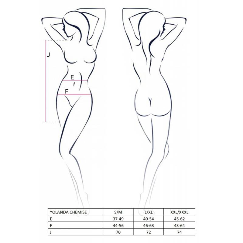 Пеньюар Passion Erotic Line Yolanda Chemise - никакого латекса и винила, только обжигающее кружево, строгие формы, длинные рукава и отсутствие вырезов. Такой наряд сделает Вас неприступной, и оттого более желанной, знойной, откровенной и в то же время непорочной. Такой контраст рождает неимоверные смелые фантазии и желания - смело реализуйте их!