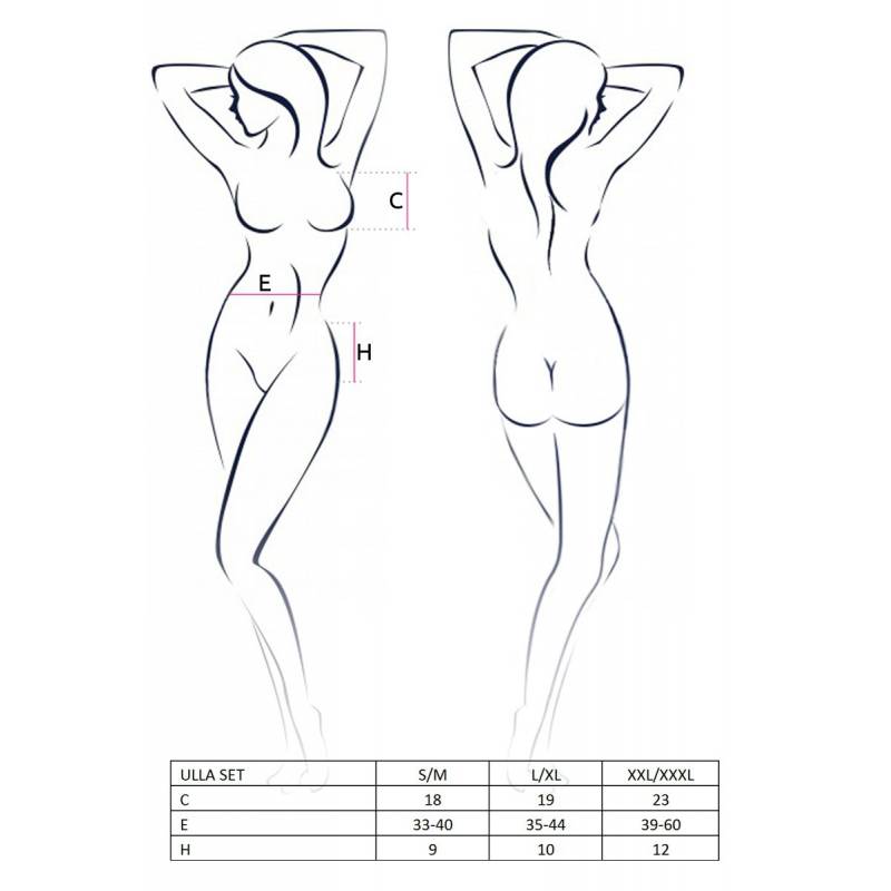 Нежный сет Passion Erotic Line ULLA SET сочетает в себе слегка собранное полупрозрачное кружево и атласные ленты. Треугольный бюстгальтер с широким низом помогает придать груди дополнительного объема и пышности, обнажая при этом притягательные манящие соски.