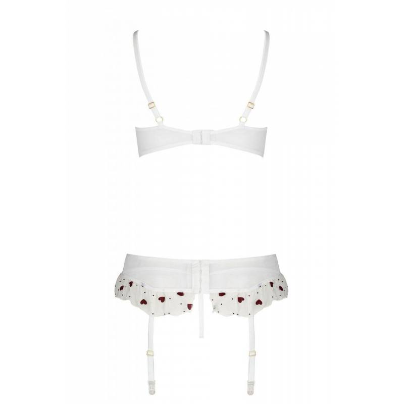 Ищете необычное белье, соблазнительное, комфортное и качественное Вы его нашли! Рекомендуем купить сексуальный комплект с поясом для чулок LOVELIA SET white L/XL - Passion. В комплект входит шикарный бюстгальтер с плотной чашкой на косточках, которая отлично держит грудь, пояс для чулок с юбочкой и трусики-стринги с доступом — все, чтобы обычное свидание превратить в фантастическое эротическое приключение.