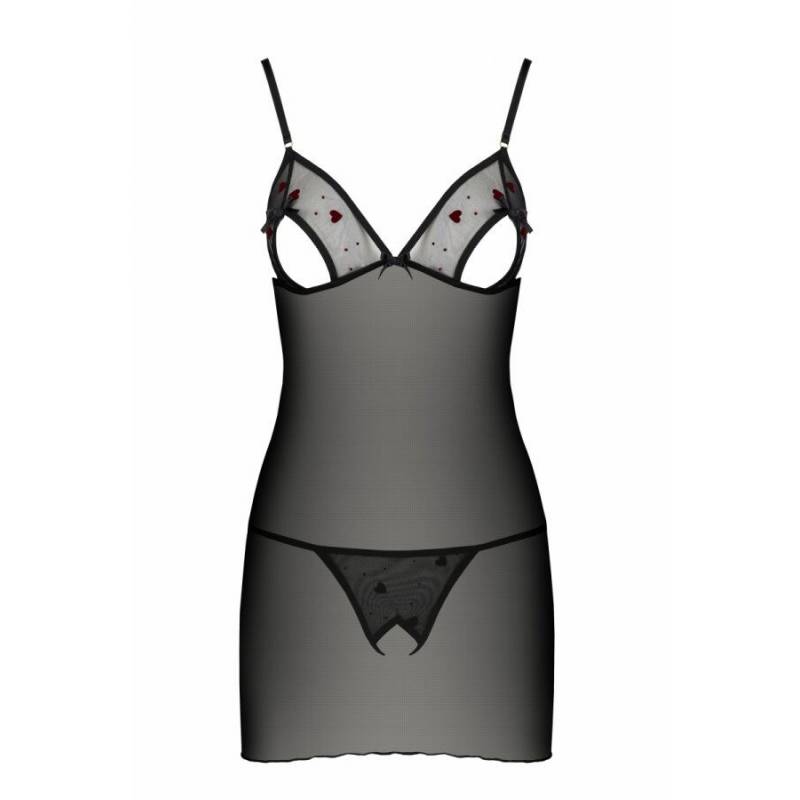 Красивая и удобная сорочка с вырезами на груди + стринги LOVELIA CHEMISE black S/M - Passion порадует каждую! Ведь данная модель:
